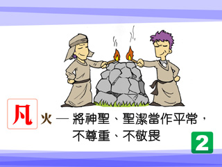 在这样荣耀的时刻,如此欢庆的时候,有一件很扫兴的事发生了。亚伦的两个儿子各拿自己的香炉盛火加香,献给神。没有第二次的机会,有火从神那里出来,把他们烧死了。凡火就是没有从祭坛取的火,而且是神没有吩咐,他们自行去做。神很严格,因为这是要服侍祂的人,要在百姓面前做榜样的领袖。神的要求很容易也很难,神只要求我们按着祂的吩咐做,没有要我们做什么大事,只要听话就好了。不要自己想办法去讨好神。不要用自己的方法去取悦神。世人都想用功德和善行为自己积分,以进入天堂。但是神只要人按着祂的话去行,不要猜神的心,不要想东想西,不要以为自己最聪明,只要顺服,神说什么,我们就做什么,这样神就满足了。
