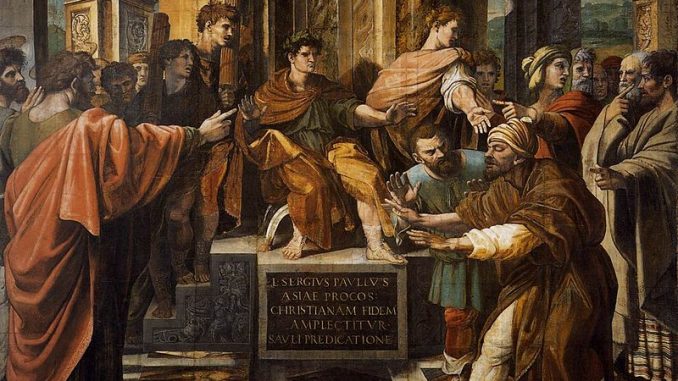 保羅“充滿聖靈,定睛看着”這個受撒但利用的巫師,説:“你這個滿懷各樣欺詐、各樣奸惡的人,魔鬼之子,跟一切正義的事為敵,你歪曲耶和華的正道,還不停止嗎?看哪!耶和華下手打擊你了,你要瞎眼,好一陣子看不見陽光。”巴耶穌當時就瞎了。行省總督目睹保羅施行的奇迹(記載中保羅的第一次),“很驚異耶和華的道理”,就欣然接受聖經信息,“成了信徒”。(徒