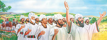 犹大众人,……都站在耶和华面前。那时,耶和华的灵在会中临到利未人亚萨的後裔……雅哈悉;他说,犹大众人,耶路撒冷的居民,和约沙法王,你们请听,耶和华对你们如此说,不要因这大军恐惧,惊惶,因为胜败……乃在乎神。明日你们要下去迎敌;……这次你们不要争战,……看耶和华为你们施行拯救;不要恐惧,也不要惊惶;……因为耶和华与你们同在。约沙法就面伏于地;犹大众人,和耶路撒冷的居民,也俯伏在耶和华面前,叩拜耶和华。哥辖族和可拉族的利未人,都起来,用极大的声音赞美耶和华以色列的神。次日清早众人起来,……约沙法站著说,犹大人,和耶路撒冷的居民哪,要听我说,信耶和华你们的神,就必立稳;……约沙法……设立歌唱的人,颂赞耶和华,使他们穿上圣洁的礼服,走在军前赞美耶和华,说,当称谢耶和华;因他的慈爱永远长存。众人方唱歌赞美的时候,耶和华就派伏兵击杀那来攻击犹大人的……人;他们就被打败了。……亚扪人和摩押人……又彼此自相击杀。……尸横遍地,没有一个逃脱的。约沙法和他的百姓就来收取敌人的财物,……多得不可携带,因为甚多,……第四日众人聚集在比拉迦谷,在那里称颂耶和华;……(代下二十13─26)