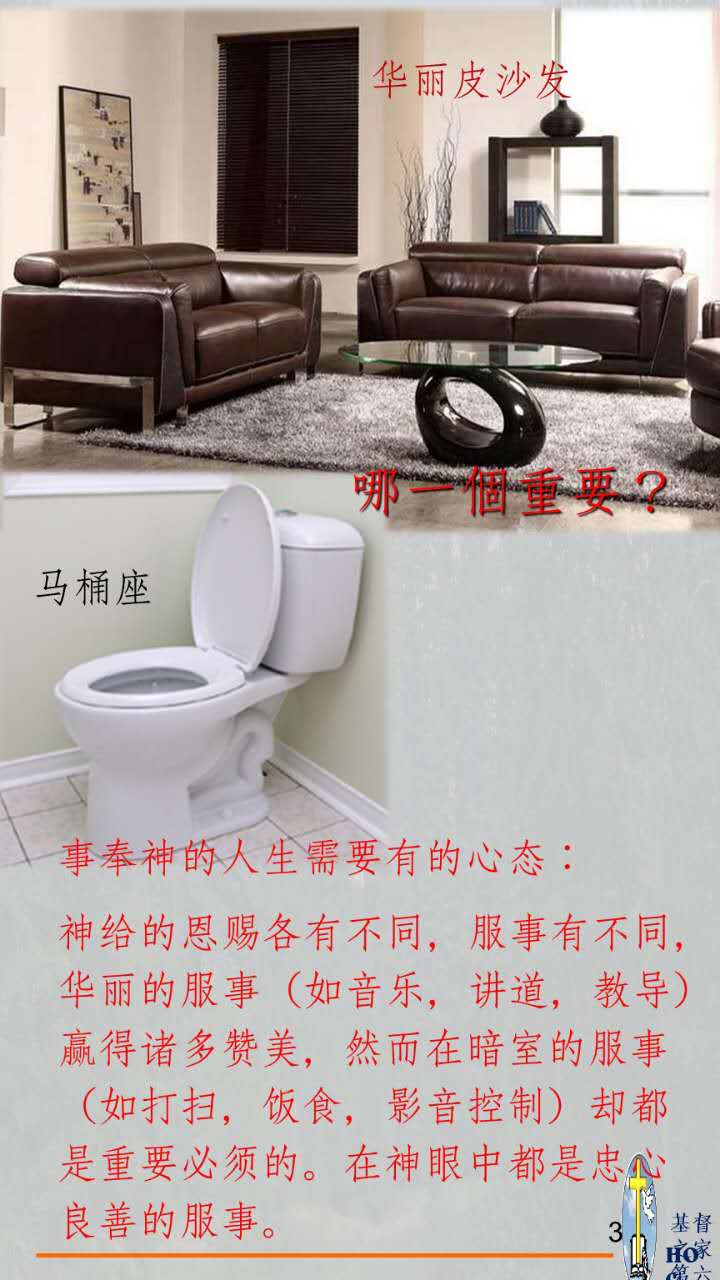 - 不管能力如何,恩賜如何,無論做什麼都是為主而做。 “无论做什么,都要从心里做,像是给主做的,不是给人做的。因你们知道,从主那里必得着基业为赏赐,你们所侍奉的乃是主基督。” (歌罗西书 3: 23-24)