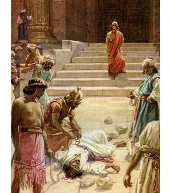 耶何耶大死后,约阿施王听从错误的主意,不理会耶和华通过先知的告诫,结果偏离正确的崇拜。撒迦利亚是约阿施的表兄弟(代下
