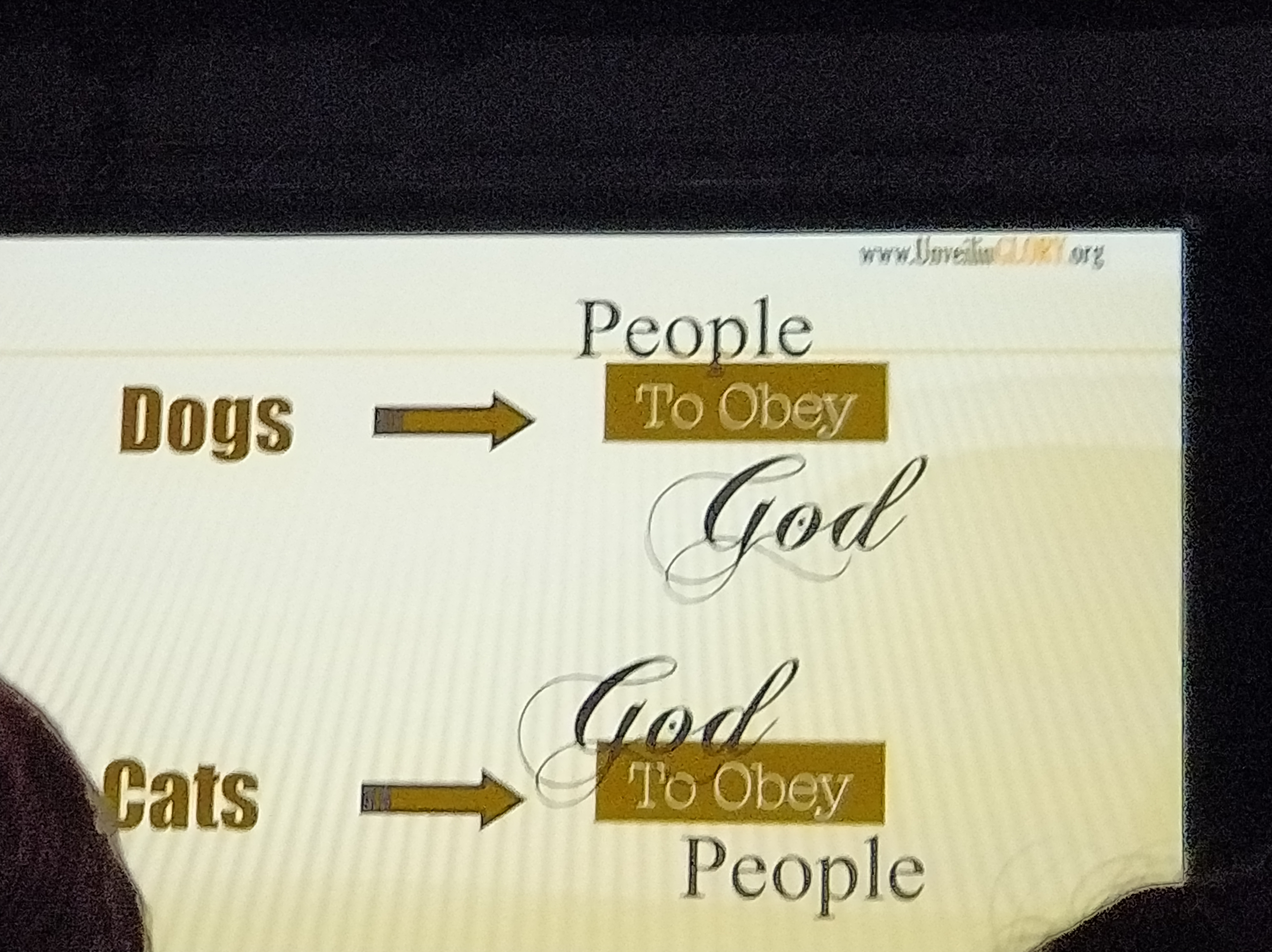 在敬拜神的时候,猫基督徒感谢神为我们所做的多于神本身,而狗基督徒敬拜的神本身多于神祝福我们的。