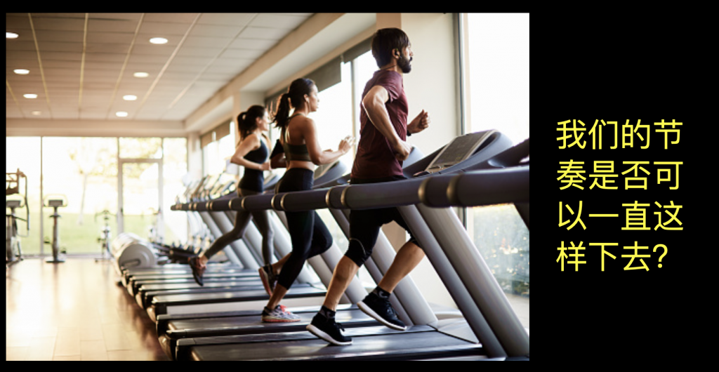 可是我们的人生并不是这样。我们生命当中有许多因素把我们不断带入到越来越快的跑道。当进入9月的时候,孩子的学校已经开学了,作为父母的你一边在家照顾孩子上网校,又要一边关注学校的许多事情。你有没有注意到,进入9月以来,你的行事历上开始密密麻麻地加的东西越来愈多?人生感觉像是踏上了跑步机,已经由不得你了,需要不断地跑,而且越跑越快,越跑越长,而且没办法停下来。这是我们的人生,我们许多节奏是由不得自己把控似的。