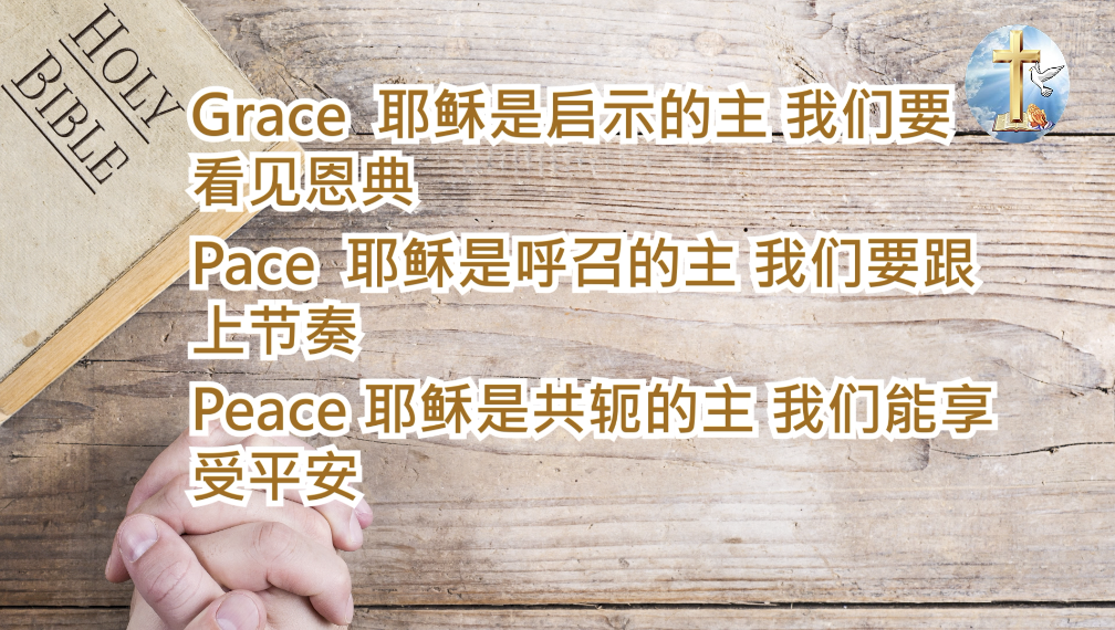 你感受到没有平安Peace的时候吗?好好反省一下自己的节奏Pace!一切都是神的恩典Grace。让我们一起祷告 !