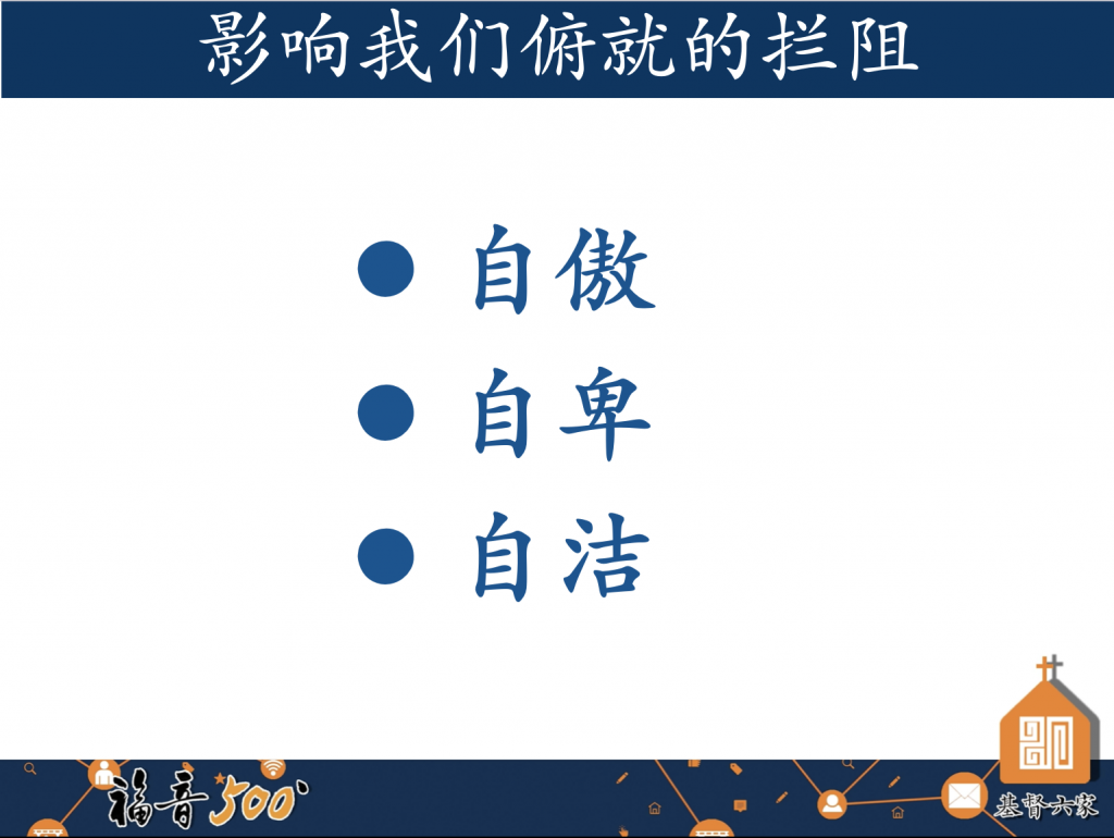 - 自傲:自己觉得自己高人一等,不屑于给比觉得自己低的人传福音。这种傲慢要不得。
