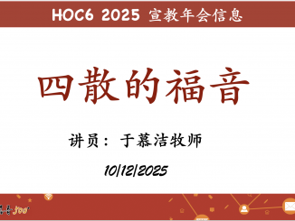 • [ 10/12/2025 ] 2025.10.12 HOC6宣教年会第二场《四散的门徒​》(于慕洁牧师) 讲台信息