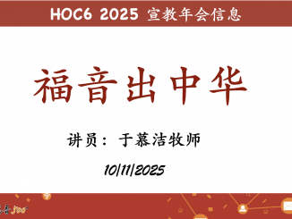 • [ 10/11/2025 ] 2025.10.11 HOC6宣教年会第一场《福音出中华​》(于慕洁牧师) 讲台信息