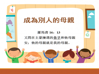 成為別人的母親 在十字架的大愛下,教会的媽媽們可以成為別人的母親。耶穌 […]