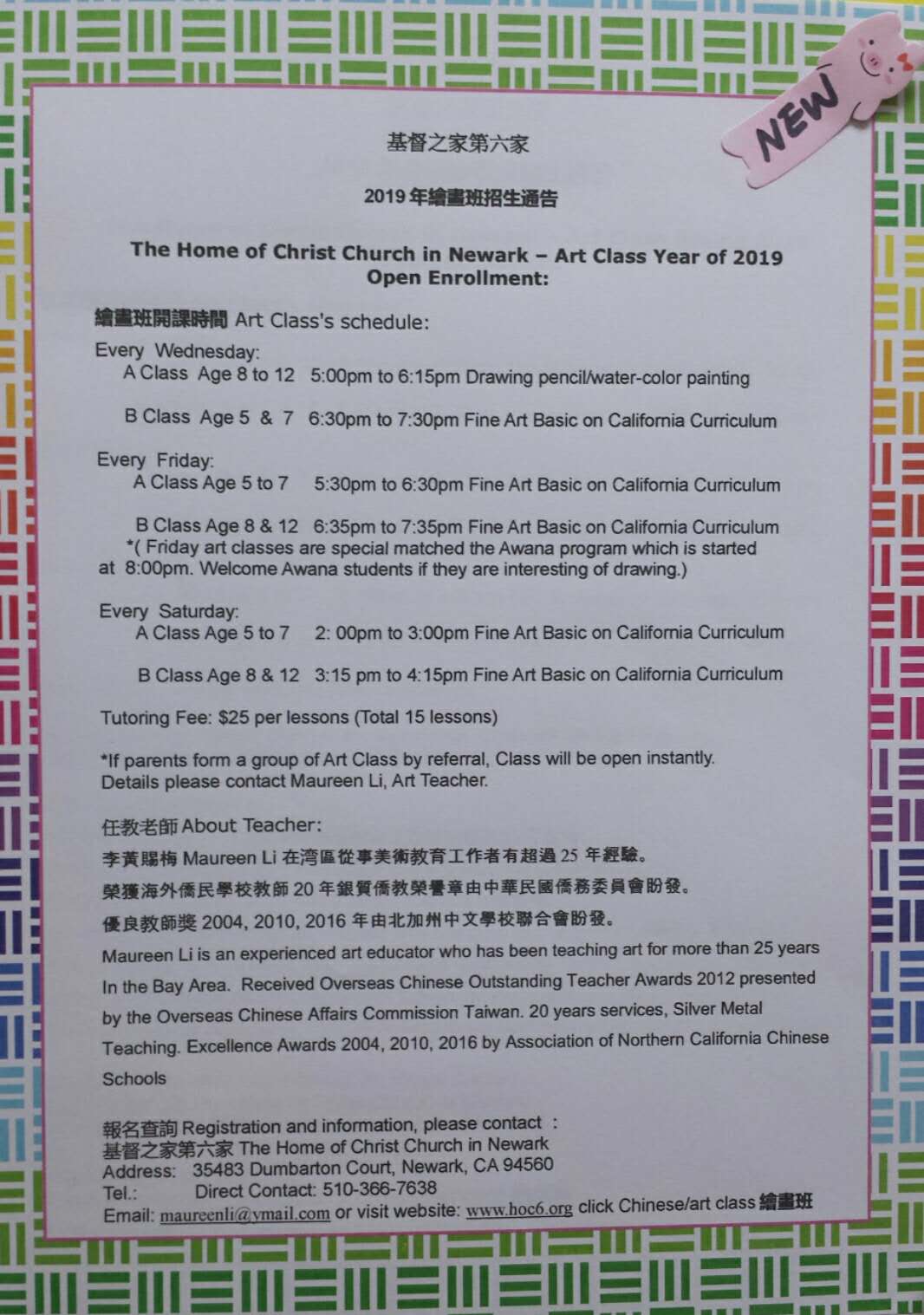 or visit website: www.hoc6.org/kids click Chinese/art class绘画班