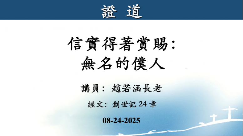 8.24.2025 主日信息《 信實得著賞賜:無名的僕人》趙若涵長老