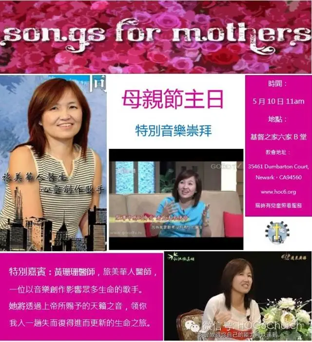 基督六家2015母亲节主日特别音乐敬拜 2015年5月9日 hoc6 敬拜 0 特別嘉賓:黃珊珊醫師,旅美華人醫師, 一位以音樂創作影響眾多生命的歌手。 她將透過上帝所賜予的天籟之音,領你 我入一趟失而復得進而更新的生命之旅!! Post Views: 3,076