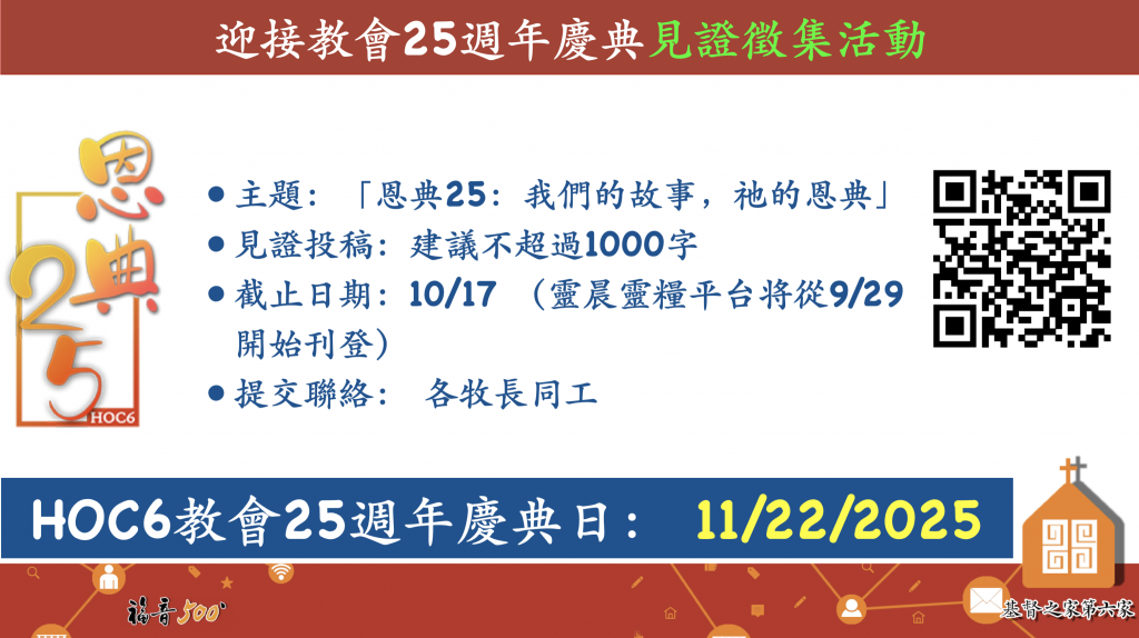教会25年全是恩典!我多么想如数家珍地把主的恩典都写岀来述说岀来啊⋯