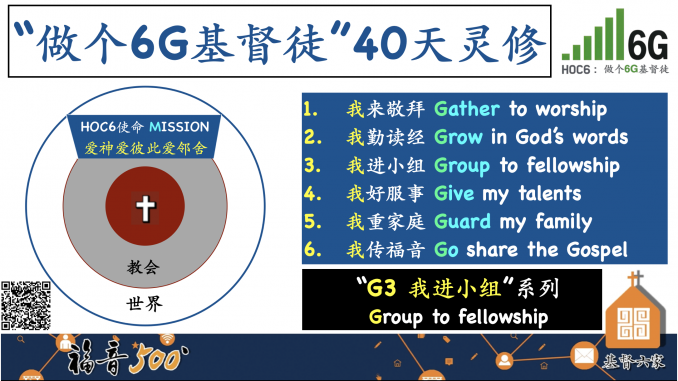 弟兄姊妹们!平安! 做个6G基督徒进入第33天的分享。今天让我们一同回顾第三周5天关于“小组”的分享:我有爱与被爱吗?