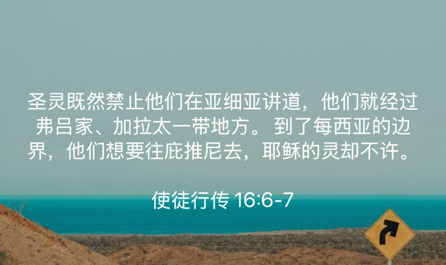 弟兄姐妹们,愿我们都能在圣灵的引导下,学会顺服,学会放下自己的计划,去走神为我们预备的更美好的道路。愿我们像保罗一样,在圣灵的禁止中看到神的信实,在祂的引导中经历祂的奇妙作为。愿神赐给我们敏锐的心,能够听见圣灵的声音,并勇敢地跟随祂的带领。阿们!