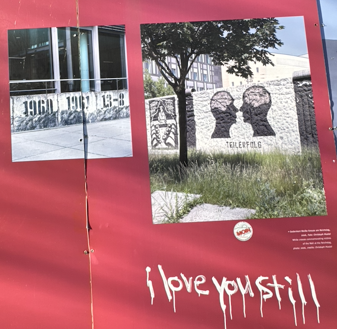 在柏林街头,一面纪念墙上的宣传栏上赫然写着“流血”的“I love you still”(我仍然爱你)。这是一句在撕裂历史的背景下留下的温柔告白——在墙曾经分割的城市、家庭与心灵之间,有一种爱仍旧选择不离不弃。墙可以倒塌,但人心的裂痕、敌意与伤害却往往更深、更久。