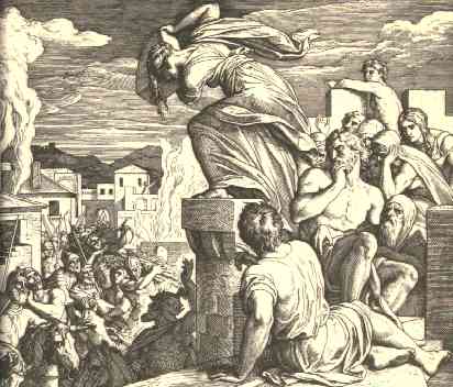 亞比米勒於是自立為王,但耶和華卻使示劍的居民跟他們的“新王”彼此交惡,藉此追討所有參與上述陰謀的人的血債。後來迦阿勒糾集示劍的居民起來叛變,亞比米勒迅速打垮了反對的勢力,攻下示劍城,把城拆毁,撒上了鹽。然後亞比米勒向伊勒比利神殿的地窖(聖所)進攻,放火燒了地窖。當時示劍樓大約有一千個居民躲在地窖裏,這些先前跟亞比米勒合謀的人全都葬身火海。之後,亞比米勒乘勝攻打北面的提備斯,卻被塔樓上一個婦人投下的一塊上磨石擊中頭部。亞比米勒臨終前叫那替他拿兵器的侍役用劍將他刺透,免得别人説他死於一個婦人之手。這樣,亞比米勒“作王”短短三年,就死於非命了。(士