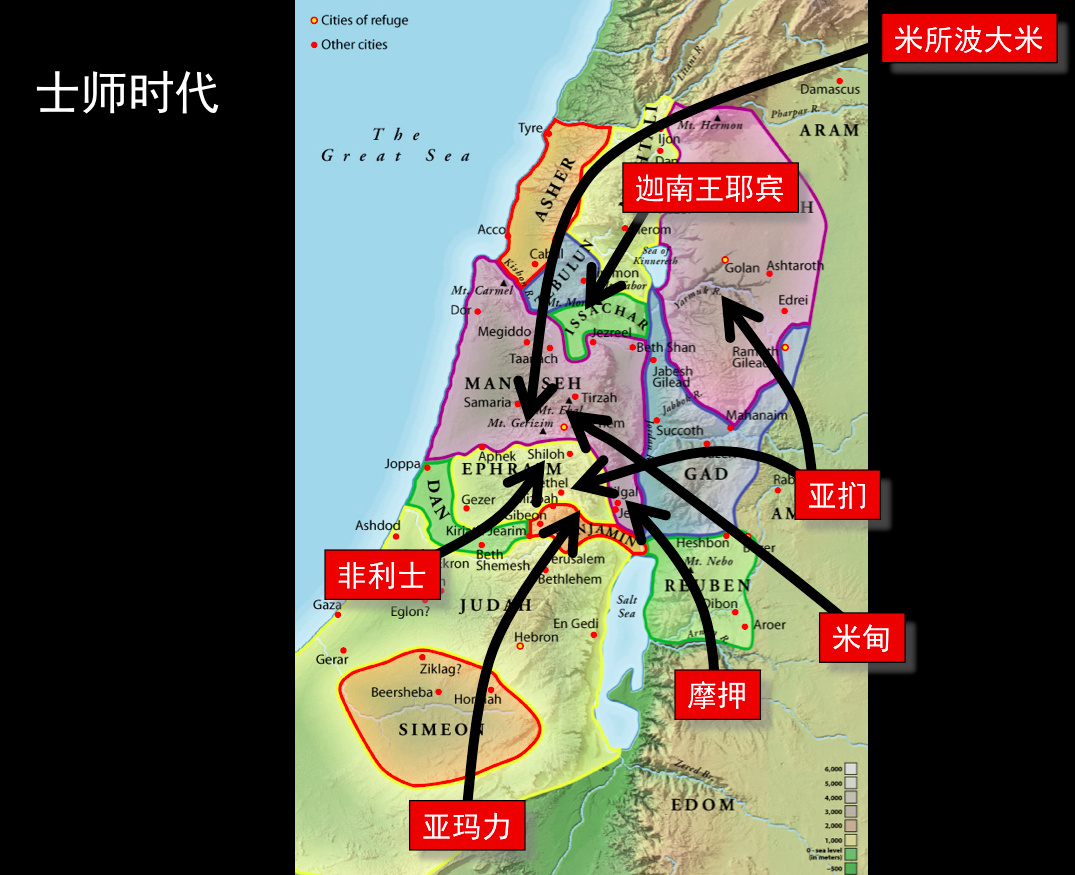 11:14-18;申 2:9,19,37;代下 20:10,11); - 以色列人攻佔迦南時,這塊後來引起爭議的土地根本不是屬於亞捫人的。當時這塊地是在迦南的亞摩利人手裏,而上帝將亞摩利人的王西宏和他的領土一併交在以色列人手中;
